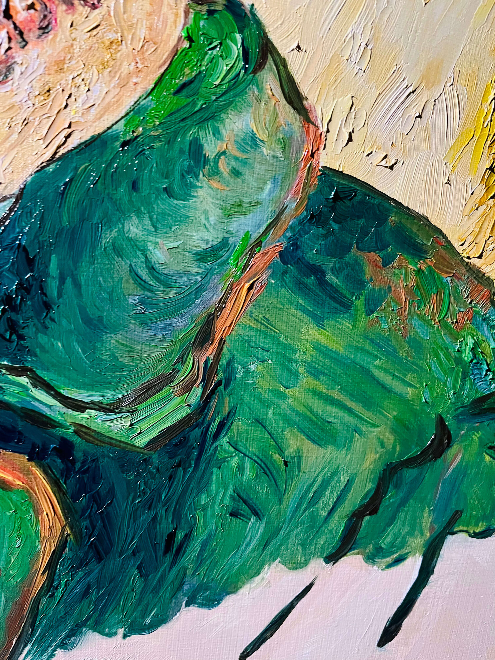 100х80 масло, хлопковый холст на деревянном подрамнике. Картина была написана с оригинала. Заказчик хотел чтобы картина была живой, чтобы она была написана широкими и смелыми мазками.